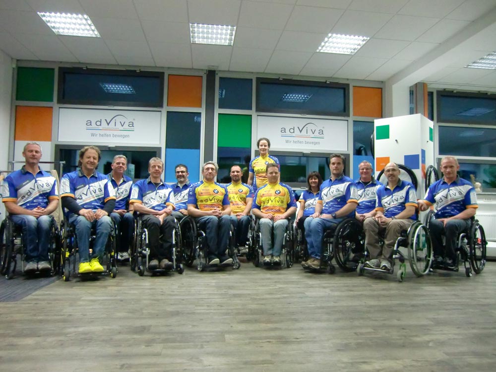In der Jahresabschlußfeier des adViva Handbiketeams wurde das abgelaufene Jahr aufgearbeitet und die Weichen für das Jahr 2016 gestellt. Nach einer Gedenkminute für unser verunglücktes Teammitglied Manfred Putz gibt Torsten Purschke, Teamchef, einen Rückblick auf das Jahr 2015: Im Jahr 1 als adViva Handbiketeam wurde wieder eine erfolgreiche Saison gefahren . Als neu formiertes Team, mit den verschiedenen Sparten: Profi-Fahrer, Breitensport und Nachwuchsförderung, war einiges an organisatorischen Dingen zu klären. Aber wie gewohnt, wächst das Team mit seinen Aufgaben. Das Jahr 2015 begann traditionell auf Lanzarote mit dem ersten Trainingslager und der Vuelta Playa Blanca. Danach wurde auf Mallorca das Teamtrainingslager in Arenal durchgeführt. Gut vorbereitet konnten die Teammitglieder in der ganzen Saison sehr gute Ergebnisse erzielen. Bei internationalen und nationalen Serien konnten vordere Plätze erreicht werden. Torsten Purschke konnte sich für die WM qualifizieren und gewann eindrucksvoll bei seinem prestigeträchtigen Heimrennen in Heidelberg. Jürgen Döringer gewann 2 HCT-Rennen und wurde vom Bundestrainer zu offiziellen Weltcup und Europacuprennen eingeladen. Wie jedes Jahr veranstaltete das Team 2 Trainingswochen in denen Neulinge und alte Hasen zusammen eine gut betreute Handbike-Trainingswoche absolvieren. In diesem Jahr wurde auch erstmals eine „Über Stock und Stein“ Trainingswoche veranstaltet, in der es mit Mountain-Handbikes durch die Wälder am Neckartal ging. Auch bei vielen anderen Aktivitäten, wie z.B. Rollstuhlmobikurse und auf Messen ist das adViva-Handbiketeam anzutreffen.